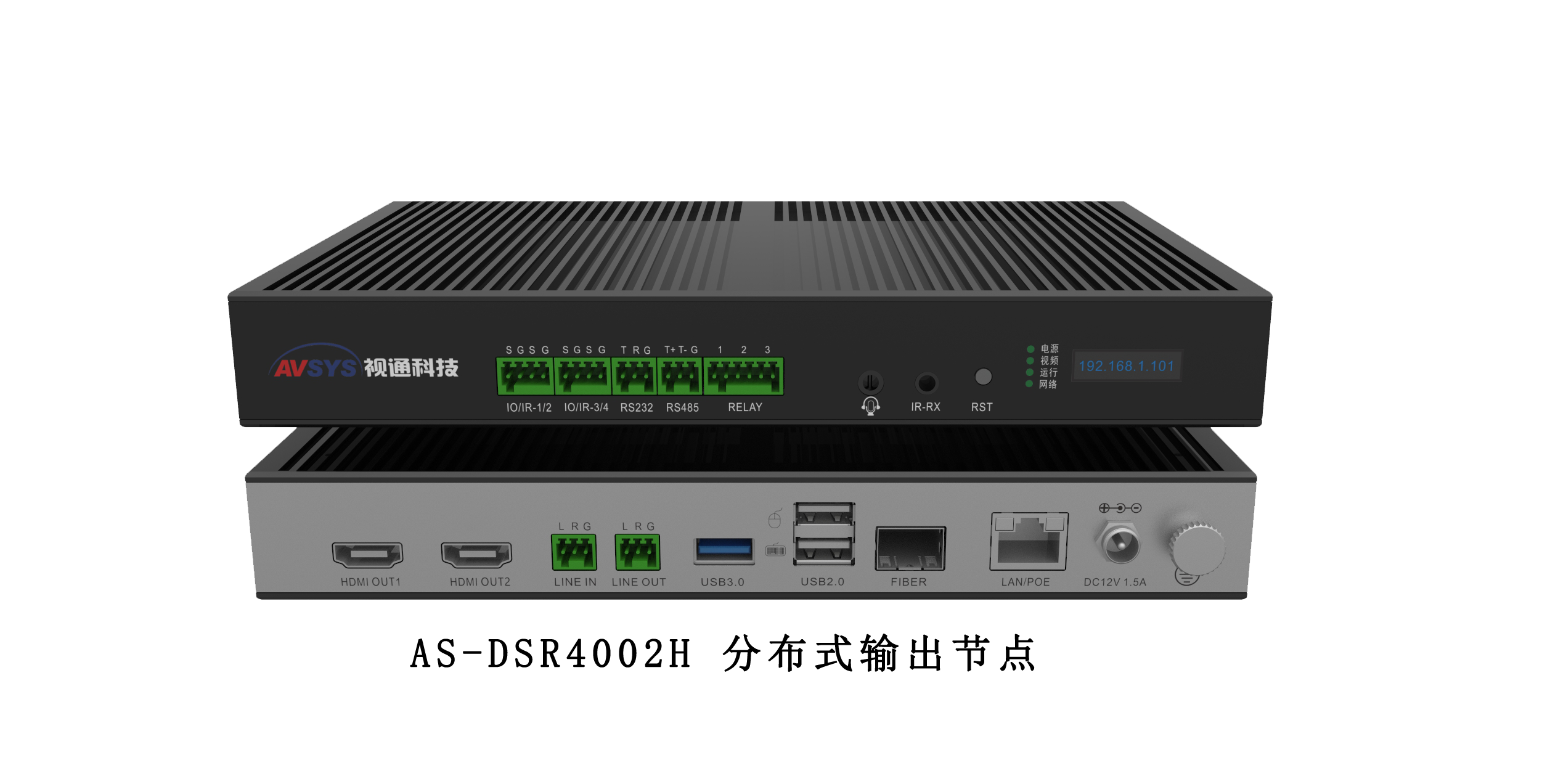 AS-DSR4002H分布式4K60 2路输出节点是AS-ADS分布式KVM坐席拼控系统解码输出端。